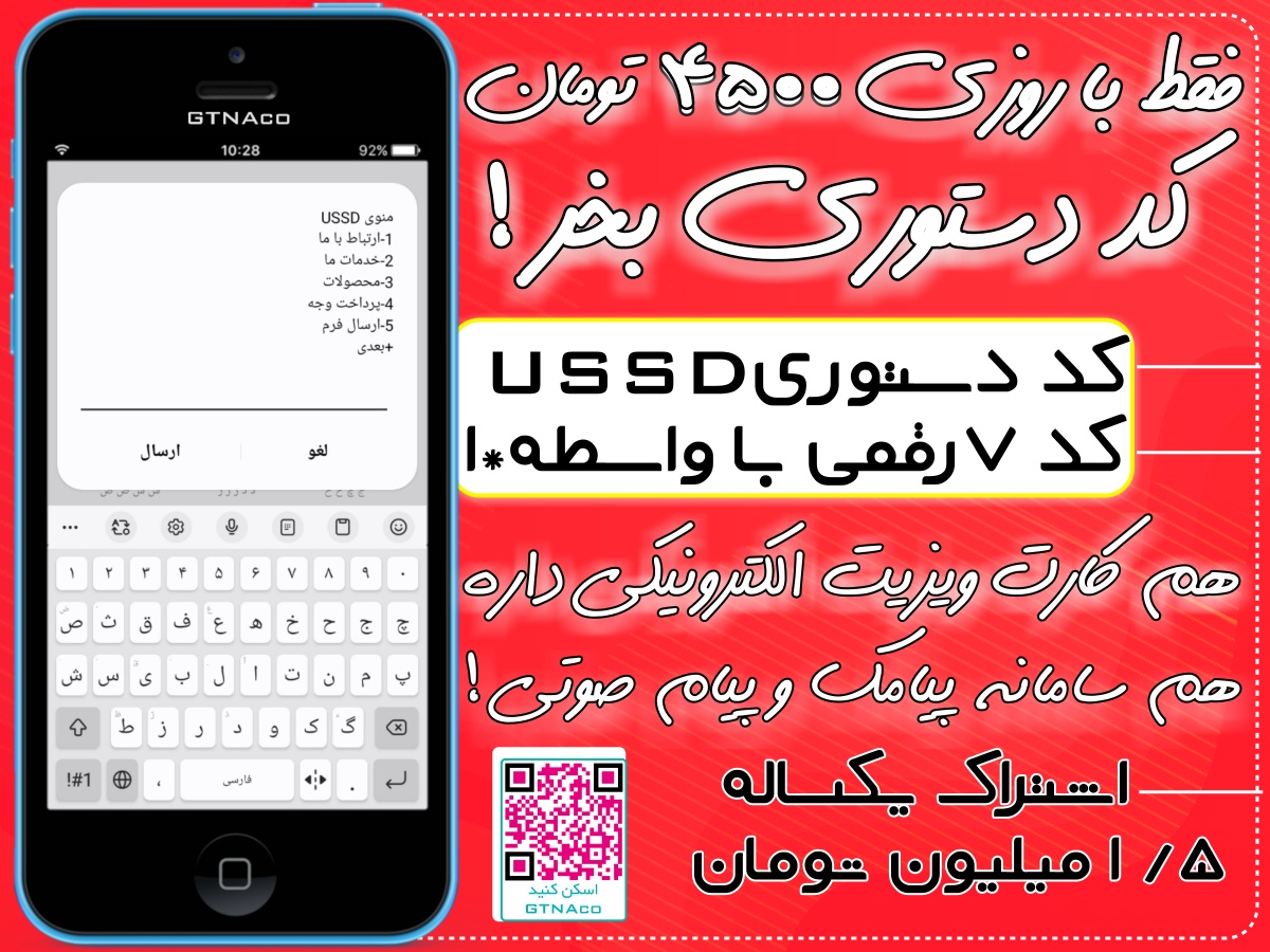 خدمتی جدید برای مشترکین شما در مناطق مختلفامکان بینظیر کدهای دستوری ویژه شرکت های توزیع انرژی برای خدمات رسانی و اطلاع رسانی به عموم مردم و مشترکین خانگیبه کمک این سامانه ارتباطی میتوان در فصول مختلف با توجه به افزایش مصرف انرژی و اعمال محدودیت ها در بخش های مختلف، برای اطلاع رسانی بهتر به مشترکین هر منطقه و دریافت نظرها و بازخوردهای مشترکین، یک روش آسان و کم هزینه ایجاد کرد.شما با تهیه یک کد دستوری USSD از این مجموعه و تعریف منوهای مورد نیاز برای خدمات اطلاع رسانی به عموم از طریق پاسخ USSD میتوانید پیام های آماده در پاسخ مربوط به هر کد منوها را ایجاد کرده تا بصورت اتوماتیک هر کاربری که کد آن منو را وارد میکند دریافت نماید.قابل استفاده با تمامی گوشی های همراه حتی موبایل های قدیمی استفاده از این سرویس کاملا رایگان است استفاده آفلاین و بدون نیاز به اینترنت تلفن همراه دریافت نظرات و بازخوردهای مردمی از طریق شماره گیری کد دستوری