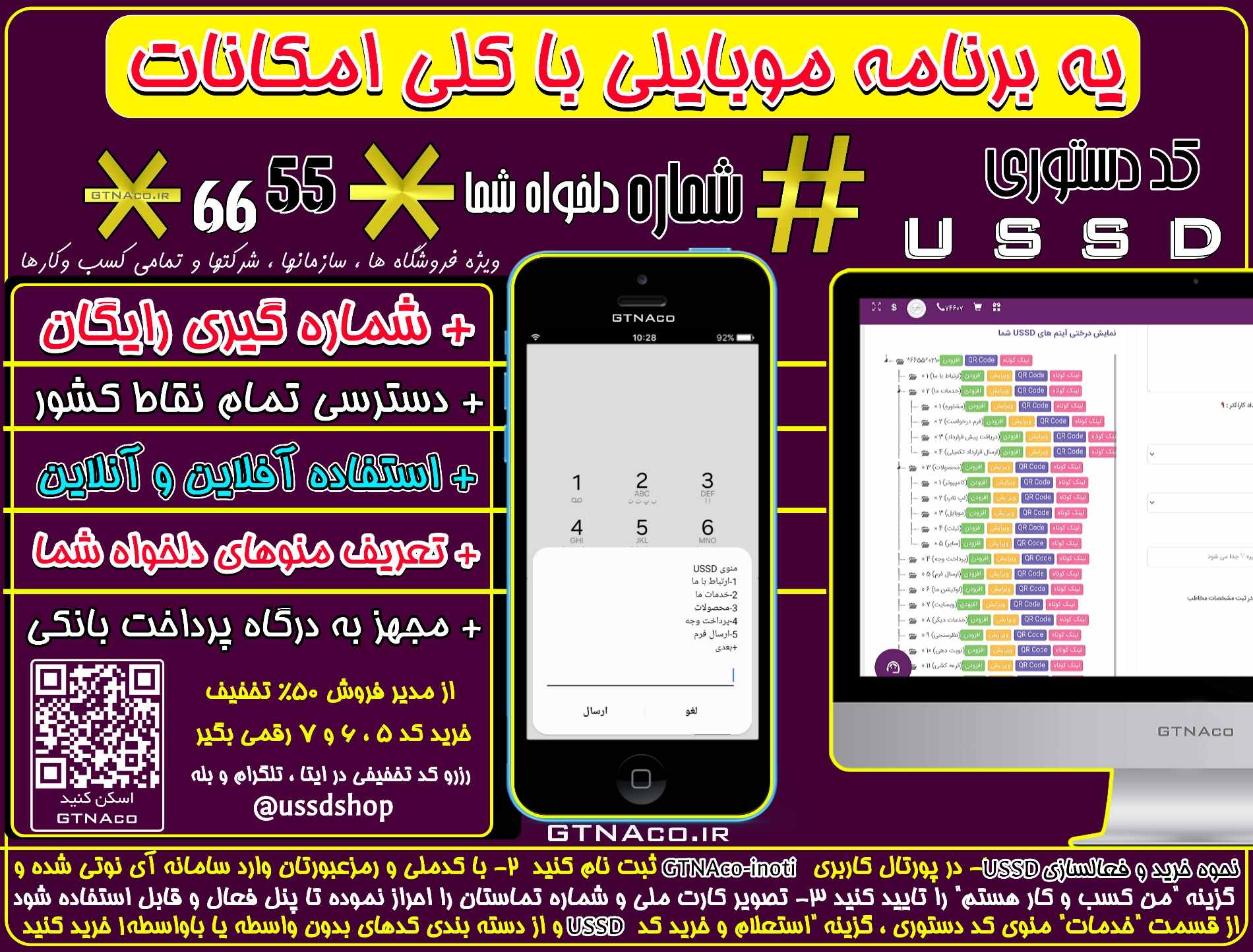 توجه: پس از تکمیل ثبت نام در پورتال آی نوتی، سپس با کد ملی و رمز عبورتان وارد سامانه inoti شده و گزینه کسب و کار هستم را انتخاب و در صفحه میزکار از منوی خدمات ، کد دستوری USSD، گزینه استعلام و خرید ussd را انتخاب و کد مورد نظرتان را به سبد خرید و پرداخت اضافه نمایید